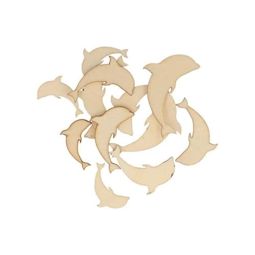 Le sac contient 30 mini silhouettes en bois en forme de dauphins. De 3 tailles différentes, vous pouvez les personnaliser et les décorer avec de la peinture, de la craie, de la peinture en spray, de la peinture acrylique… Idéal pour une décoration aquatique.