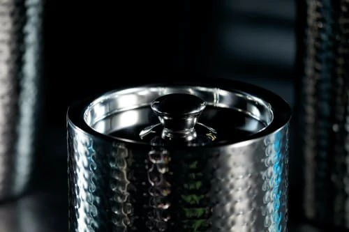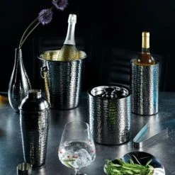 Ce seau à glace permet également de conserver une bouteille de vin au frais. Doté d’une double paroi isolante, il ralentit la fonte des glaçons et permet de garder une bouteille de vin au frais tout au long du dîner. Fabriqué en acier inoxydable martelé, il ajoutera une touche élégante et moderne au centre de la table, pour des moments festifs inoubliables. Livré avec un couvercle et une pince à glace, ce seau à glace se nettoie à la main uniquement.