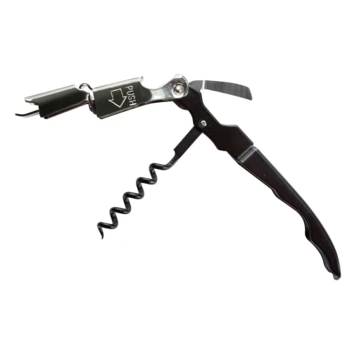 C’est l’un des tire-bouchons les plus utilisés par les serveurs ces dernières années. Il dispose d’un système à double impulsion qui facilite grandement l’extraction du liège. Grâce à sa petite taille, il ne prend pratiquement pas de place une fois plié. Comprend un couteau pour décapsuler.