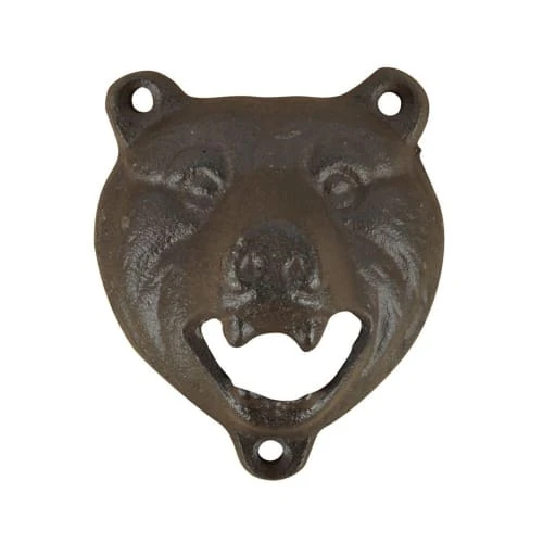 Aspect : Matériau principal : FonteDimensions : Hauteur (en cm) : 8,90Longueur (en cm) : 4,50Profondeur (en cm) : 5,10Autres caractéristiques : Informations complémentaires : Encoches pour fixation muralePoids (en kg) : 0,29 Ouvre bouteille tête d’ours