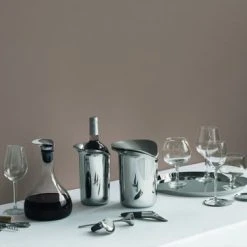 Le refroidisseur de glace Sky avec pinces à glace du fabricant Georg Jensen a été créé par le designer français Aurélien Barbry. Par sa forme et son élégance, il s’intègre parfaitement dans la collection Sky de Georg Jensen, qui réinterprète les ustensiles de bar fonctionnels d’une manière moderne et nouvelle. La surface en acier inoxydable hautement polie donne au rafraîchisseur de glace Sky avec pince à glace un éclat élégant et ajoute un beau scintillement à tout bar. Les glaçons peuvent être facilement retirés du refroidisseur de glace à l’aide de la pince à glace existante. Il mesure 15 cm de haut et 17 cm de large.