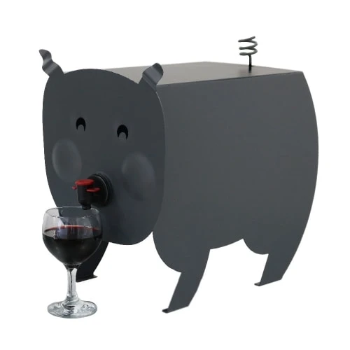 Une autre façon de servir le vin…en osant l’originalité! Nous avons créé leCOCOBIB® (designer Gérard Coquelin), sympathique cache B.I.B® (Bag In Box®) ou cache cubi ayant l’apparence d’un petit cochon et permettant de recevoir un B.I.B® de 5 litres dans son emballage carton. COCOBIB® habillé de ses couleurs dynamiques et tendances, est un porte cubi qui sait s’adapter à toutes les ambiances, intérieur ou extérieur, cosy ou contemporain, bivouac ou garden party. Un verre ballon vient naturellement se positionner sous le robinet. Fond incliné facilitant l’écoulement du vin. Chaque COCOBIB® est livré avec une bague permettant de recevoir les BIB® de 3 litres ou 5 litres en emballage vertical et glisser des ice pack si besoin contre la poche pour maintenir au frais. Parmi tous les accessoires autour du vin, COCOBIB est certainement le plus original et le plus sympa des porte bib. Il égaiera vos tables et réceptions par sa bonne humeur.