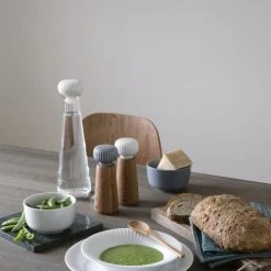 Le moulin à épices Hammershøi du créateur danois Hans-Christian Bauer pour le fabricant Kähler Design fait partie de la vaste collection Hammershøi, qui comprend de nombreux accessoires pour le salon. Hans-Christian Bauer a réussi à combiner le caractère unique de la céramique avec un design et une fonctionnalité modernes, créant ainsi un moulin à épices qui n’est pas seulement pratique, mais qui attire également le regard sur la table à manger et dans la cuisine. La combinaison de la céramique Kähler de haute qualité de la tête du moulin avec le bois du corps donne au moulin un caractère chaleureux et grâce aux différentes couleurs et tailles, la différence entre salière et poivrière est clairement visible. Le broyeur unique a été fabriqué par CrushGrind, qui est connu pour sa haute qualité. Un autre point fort du moulin à épices Hammershøi est le réglage très simple du degré de broyage afin que vous obteniez toujours la finesse désirée.