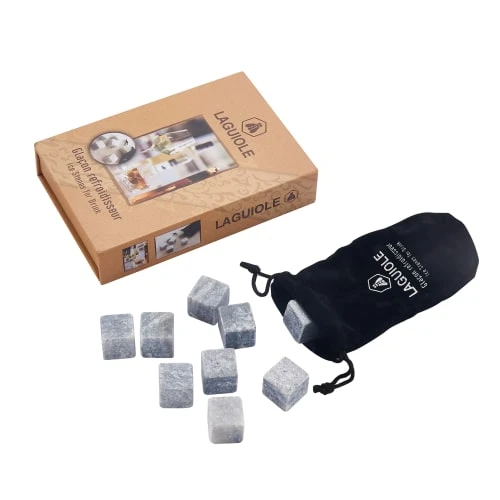 La boîte de glaçons refroidisseurs en stéatite Laguiole contient 9 pièces. Collectionnez-les pour agrémenter toutes vos réceptions.