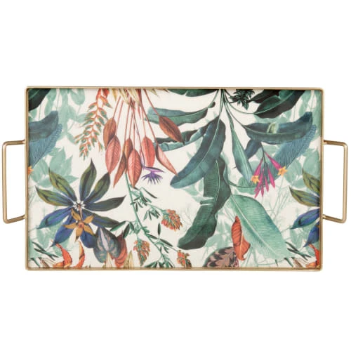 Maisons Du Monde Plateau Déco En Métal Doré Imprimé Feuillage Exotique Multicolore