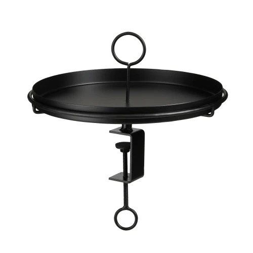 Ce plateau Aston moderne avec pince est issu de Mica Decorations et est idéal pour servir d’extension à votre table. Le plateau est fabriqué en métal robuste et est de couleur noire. La pince vous permet de le fixer solidement à une table. Vous pouvez aussi l’installer sur une table dans votre jardin, par exemple, pour créer un peu plus d’espace. Le plateau est amovible. Pratique lorsque vous voulez servir quelque chose à boire ou à manger ! Les plateaux Aston sont disponibles en différentes tailles et couleurs. Vous pouvez également les combiner les uns avec les autres pour créer un ensemble élégant ! Ce modèle fait 30 cm de haut et 30,5 cm de diamètre. Attention : l’épaisseur de la table ne doit pas dépasser 3,2 cm et cet article ne résiste pas aux intempéries et à l’eau. Nous vous recommandons de le rentrer à l’intérieur après l’avoir utilisé à l’extérieur.