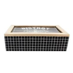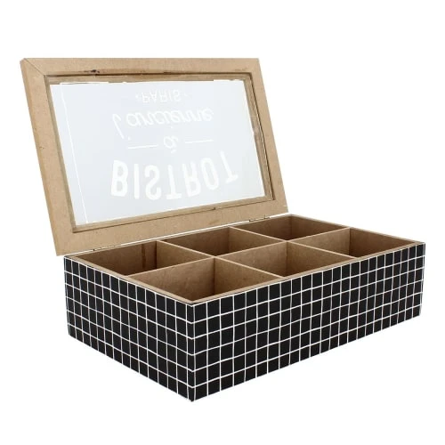 Cette boîte à thé contient 6 compartiments pour ranger vos sachets de thé et infusions.Son design est pile dans la tendance actuelle. Conservez vos sachets de thé et infusions à l’abri de l’humidité Look vintage