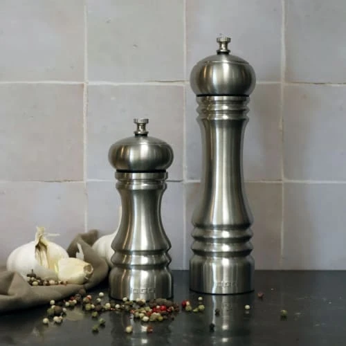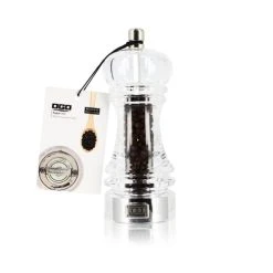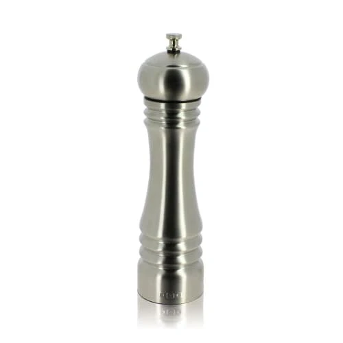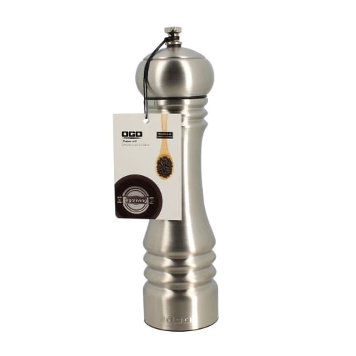Ce Moulin à poivre OGO Living vous permettra d’assaisonner vos plats parfaitement grâce à son système de broyeur en acier carbone, le réglage de mouture est possible, de plus son aspect esthétique en acier inoxydable sera du plus bel effet en cuisine comme sur votre table. Les moulins OGO Living sont un choix sûr et moderne. Réglage de la mouture afin d’obtenir un poivre plus moins épais en fonction de vos préférences. L’acier carbone préserve l’acier de toute corrosion et conserve l’efficacité d’origine du broyeur. Ce produit de la gamme OGO est garanti contact alimentaire. Dimensions du moulin à poivre : Ø 6 x 23 cm