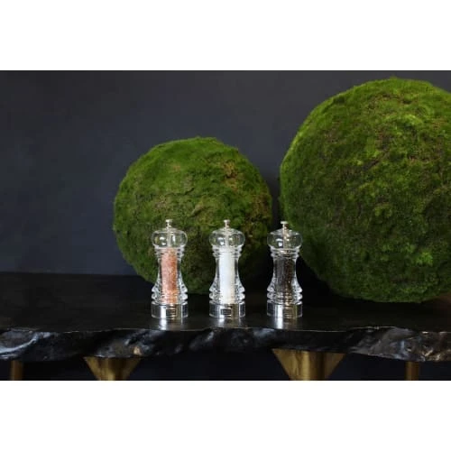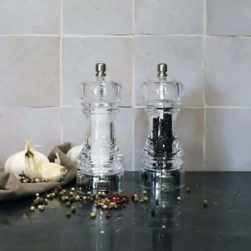 Le design, la fonction et la précision de ces moulins en acrylique transparent en font un choix sur et moderne. Le bouton d’ajustement est moleté pour faciliter la prise. Pour bien reconnaître le moulin, les lettres S et P sont imprimées sur le dessus du bouton. Le moulin est également muni d’un ressort pour assurer que la mouture désirée soit constante. Les produits OGO sont un choix sur et durable. Moulin en acrylique avec mécanisme en acier carbone. Le moulin est équipé d’un ressort afin de permettre une mouture ajustable. Ce produit est vendu avec le poivre. Garanti contact alimentaire