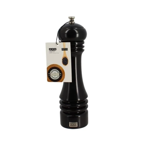 Ce moulin à poivre en bois de hêtre d’Allemagne laqué noir au look épuré et professionnelle accompagnera vos repas avec élégance. Pratique, le bouton d’ajustement est moleté pour faciliter la prise. Pour bien reconnaître le moulin, les lettres S et P sont imprimées sur le dessus du bouton. Le moulin est également muni d’un ressort pour assurer que la mouture désirée soit constante. Les moulins OGO Living sont un choix sur et durable. Hêtre d’Allemagne laqué noir – Bouton d’ajustement moleté. Muni d’un ressort pour assurer une mouture constante. Ce moulin est équipé d’un broyeur en acier au carbone. Dimensions du moulin a poivre : 6 x 6 x 23 cm