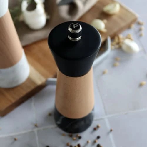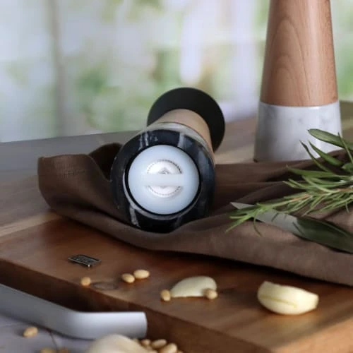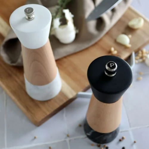 La gamme professionnelle de moulins OGO Living est un choix sûr et moderne. Le bouton d’ajustement est moleté pour faciliter la prise. Pour bien reconnaître le moulin, les lettres S et P sont imprimées sur le dessus du bouton. Le moulin est également muni d’un ressort pour assurer que la mouture désirée soit constante. Joli moulin manuel à poivre alliant élégamment le marbre véritable et le bois. Il est équipé d’un broyeur en céramique de qualité supérieur. Le moulin est aussi muni d’un ressort pour assurer que la mouture désirée soit constante. Le bouton d’ajustement est joliment moleté pour faciliter la prise en main