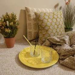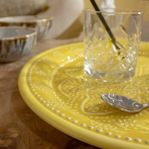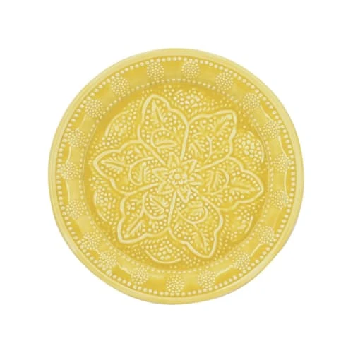 Le plateau rond en métal emaillé jaune BOMBAY est fabriqué de façon artisanale avec un savoir faire qui se transmet au fil des générations. Utilisez le comme plateau de service ou accessoire de décoration, il trouvera forcément sa place chez vous. Le motif floral et les finitions lui donnent un style oriental qui vous invite au voyage. Le métal émaillé est connu pour sa solidité et sa robustesse lui permettant de durer dans le temps. Plateau rond jaune en métal émaillé BOMBAY DIM : D32.5CM Poids : 0.500kgs