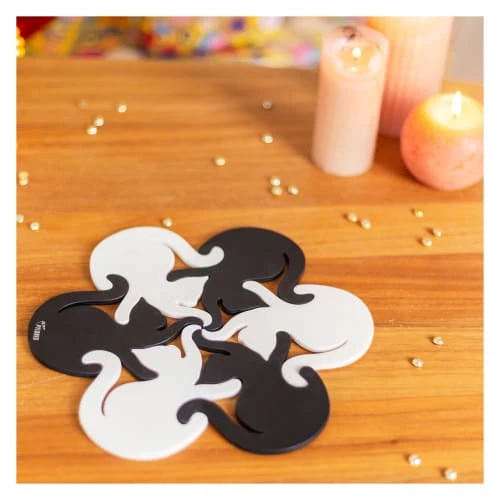 Ces chats ne sont pas farouches et seront patte dans la patte. Entremêlez, ils résisteront à la chaleur de votre casserole. Séparez, ils accueilleront et sublimeront votre verre.