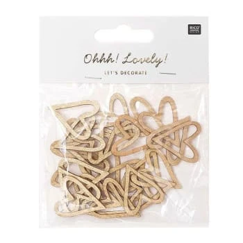 24 silhouettes en bois cœurs ouverts dorés. Décorez votre table ou votre intérieur avec ces silhouettes en bois ouvertes en forme de cœurs dorés !