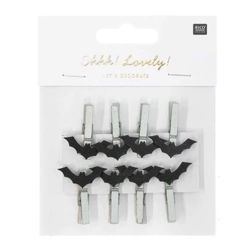8 pinces clip chauve-souris. Accrochez vos photos, vos penses-bêtes, votre liste de courses aux motifs d’Halloween avec ces clips chauve-souris !