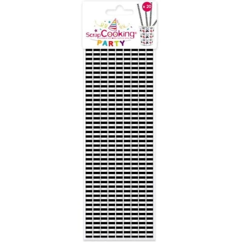 Ces 20 pailles cartonnĂ©es aux rayures noires et blanches sont idĂ©ales pour dĂ©corer une table Ă l’occasion de diffĂ©rents Ă©vĂ©nements : anniversaire, mariage, baptĂŞme… Soyez crĂ©atifs avec les produits de ScrapCooking Party !