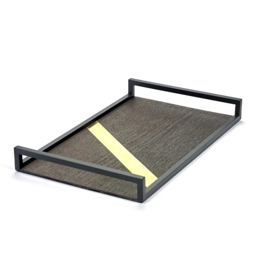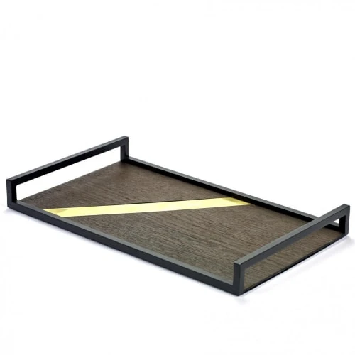 Plateau Grint Piece Messing édité par SeraxUn plateau au contour en métal noir et fond en bois foncé avec motif géométrique contrasté pour un magnifique aspect rétro moderne !On aime ce plateau Très Chic !