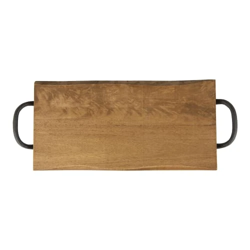 T&G Woodware Plateau 40×20 Cm En Hévéa Anses En Métal En Bois Marron