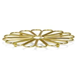 Dessous de plat élégant rond en métal doré, forme fleur.