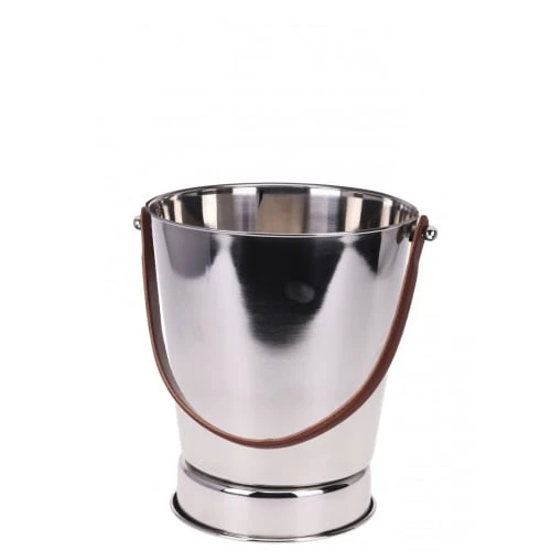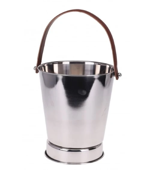 Seau à champagne en inox rond avec poignée épaisse en similicuir marron