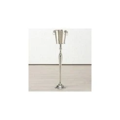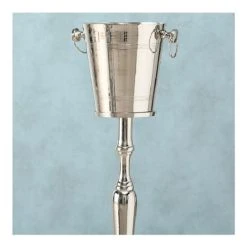 Seau à Champagne ou seau à vin sur pied. Ce set comprend le socle sur pied et le seau à champagne conçu pour le socle. Ce seau à champagne sur pied est indispensable pour désencombrer les tables et apporter une touche très professionnel à vos dîners. Le seau à champagne ainsi que le pied présentent des lignes très épurées qui font tout le charme de cette pièce. Dimensions: Diamètre 23cm x Hauteur 108cm – Matière: Aluminium – Couleur: Argent