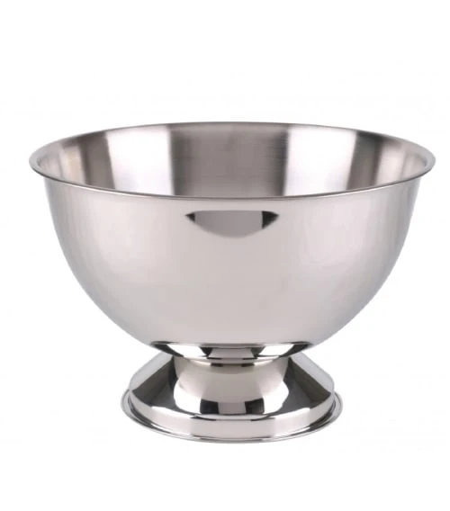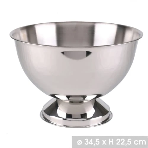 Seau à champagne en inox rond sur pied. Dimensions: diamètre 34cm x Hauteur 22.5cm – Couleur: Chrome – Matière: Inox