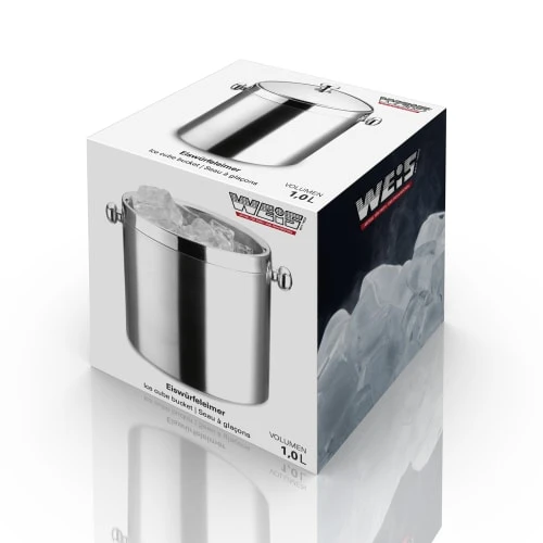 Ce seau en inox est pourvu d’une double paroi ce qui permet une isolation optimale pour vos glaçons. ce seau d’une capacité de 1l est accompagné d’une pince en inox, de quoi rafraîchir vos boissons préférées durant l’été ! Matière : Inox Couleur : Gris Longueur : 15 cm Hauteur : 17 cm Diamètre : 12 cm